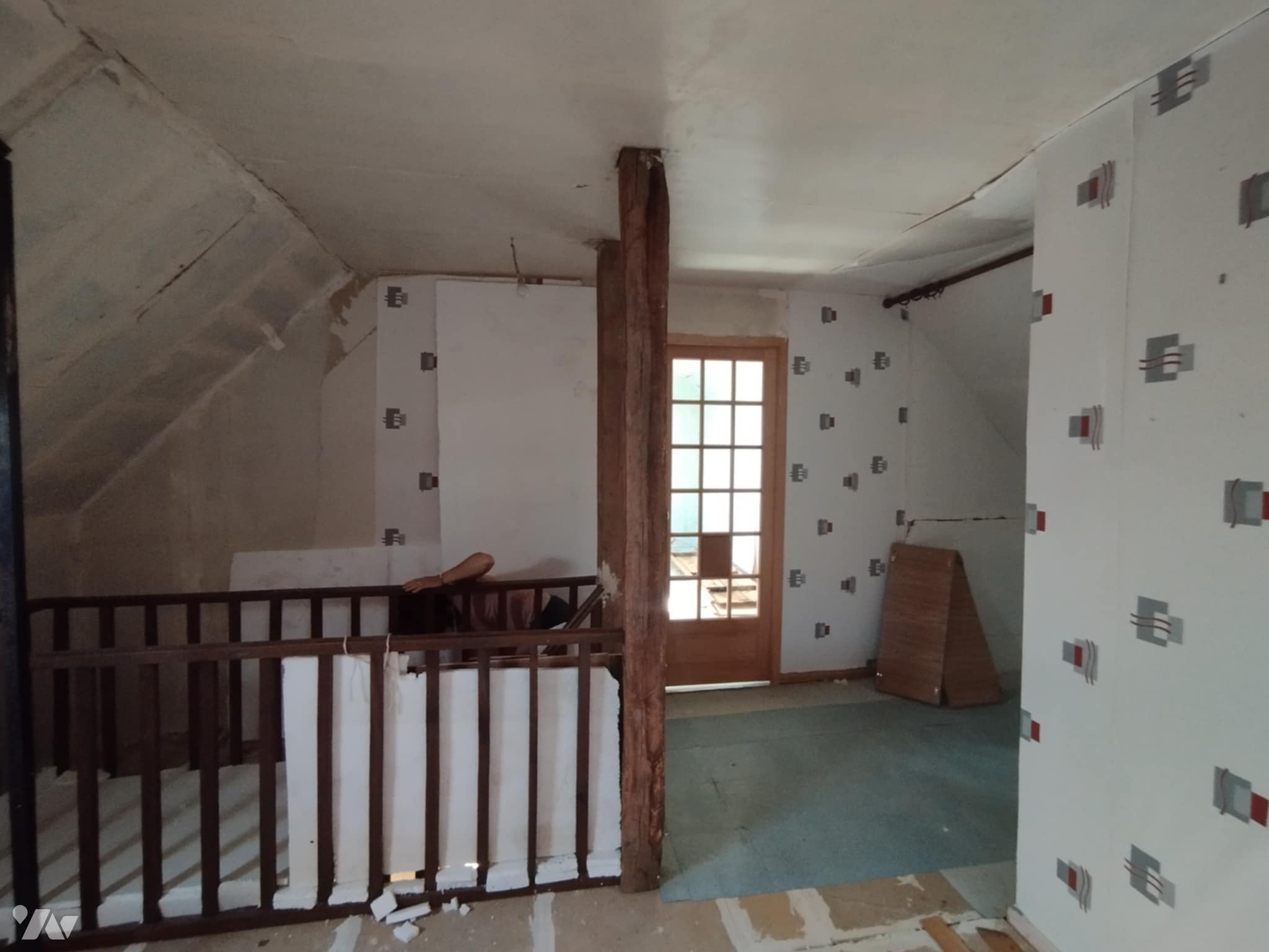 - un 1er étage à finir de rénover : pièce palière (16 m²), une grande pièce (18,90 m²), une salle d'eau et WC indépendant.